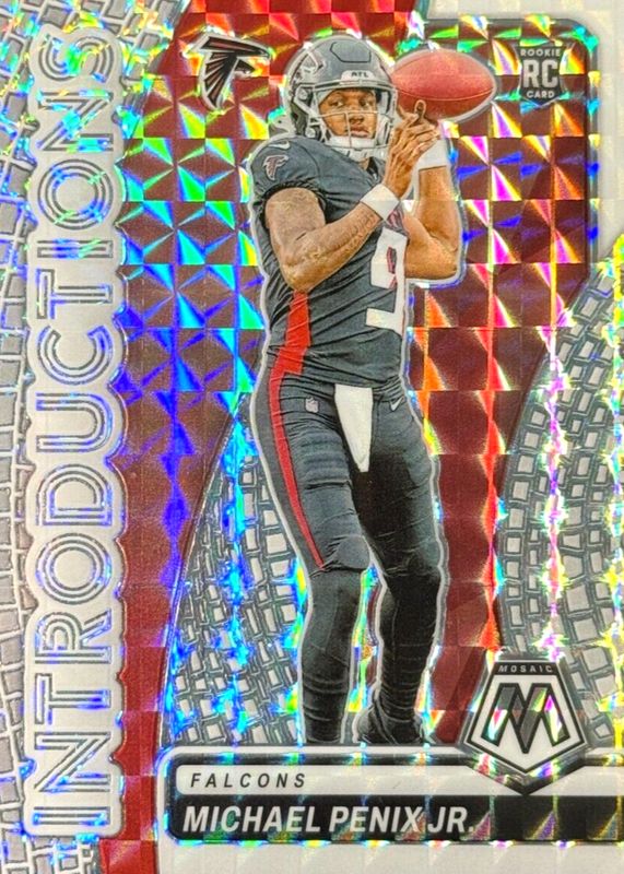 The Michael Penix Jr. 2024 Mosaic #6 Introductions - White /25 Rookie card in Raw condition has not changed in price in the last 30 days and was last sold for $20.00 .