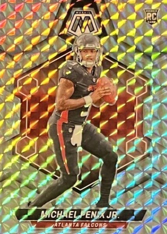 The Michael Penix Jr. 2024 Mosaic #308 Mosaic Rookie card in Raw condition has moved up $10.51 (+1,062%) in the last 30 days and was last sold for $11.50 .