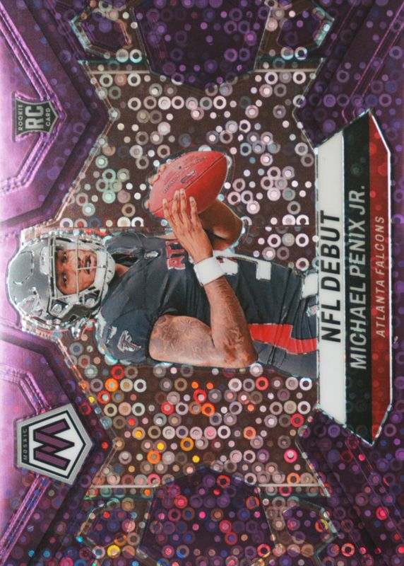The Michael Penix Jr. 2024 Mosaic #274 NFL Debut - No Huddle Purple /50 Rookie card in Raw condition has not changed in price in the last 30 days and was last sold for $44.00 .