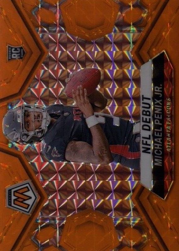 The Michael Penix Jr. 2024 Mosaic #274 NFL Debut - Orange Fluorescent /25 Rookie card in Raw condition has not changed in price in the last 30 days and was last sold for $124.99 .