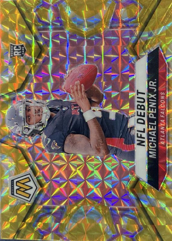 The Michael Penix Jr. 2024 Mosaic #274 NFL Debut - Reactive Yellow Rookie card in Raw condition has moved down -$1.89 (-58.2%) in the last 30 days and was last sold for $1.36 .