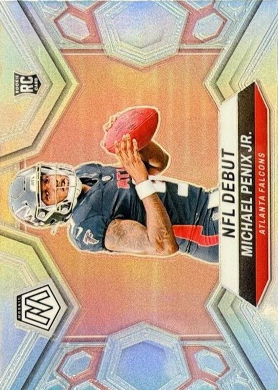 The Michael Penix Jr. 2024 Mosaic #274 NFL Debut - Silver Rookie card in Raw condition has moved up $2.00 (+202%) in the last 30 days and was last sold for $2.99 .