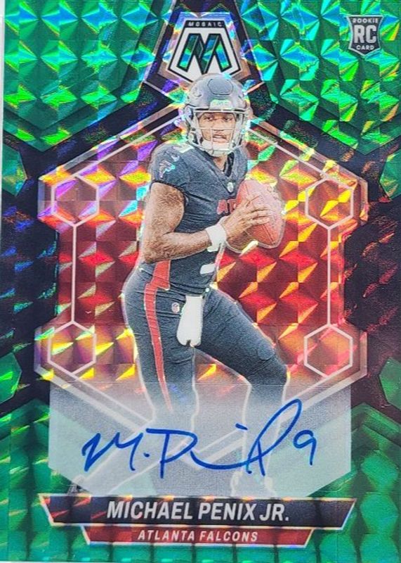 Auctions Ending Soon for Michael Penix Jr. 2024 Mosaic #308 Rookie Autographs - Choice Fusion Green & Black /25 BGS 9