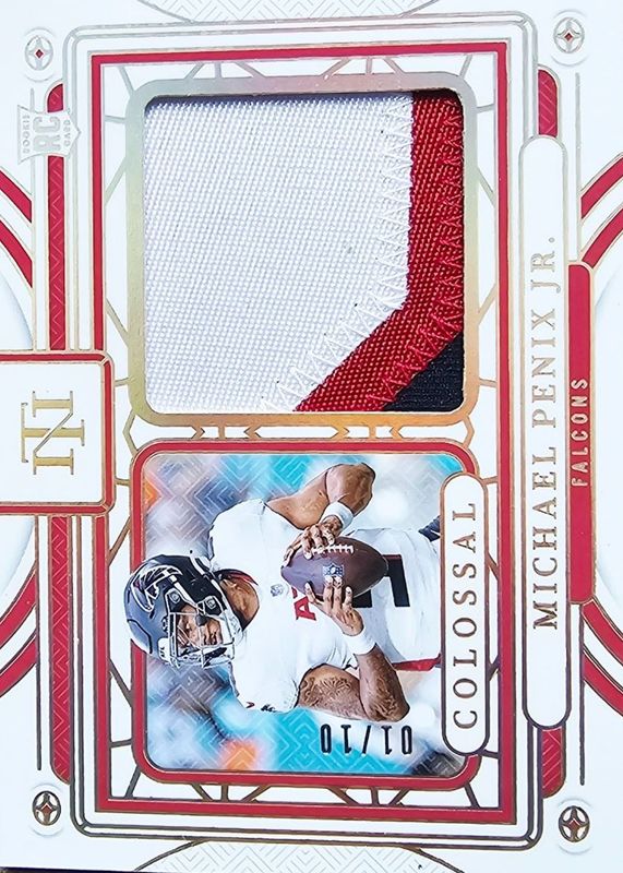 The Michael Penix Jr. 2024 National Treasures #CM-MPJ Colossal Materials - Prime Holo Gold /10 Rookie card in Raw condition has not changed in price in the last 30 days and was last sold for $135.00 .