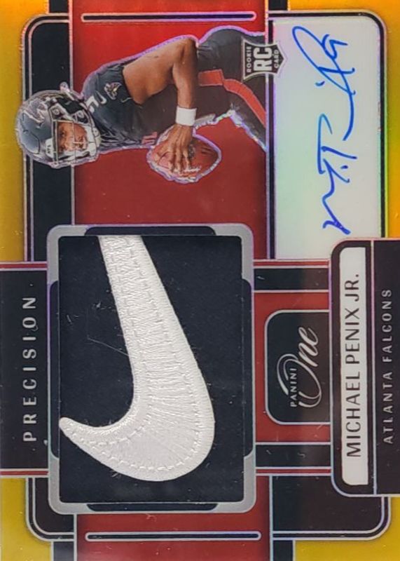 The Michael Penix Jr. 2024 One #302 Precision Rookie Patch Autographs - Gold /10 card in Raw condition has not changed in price in the last 30 days and was last sold for $1,580.00 .