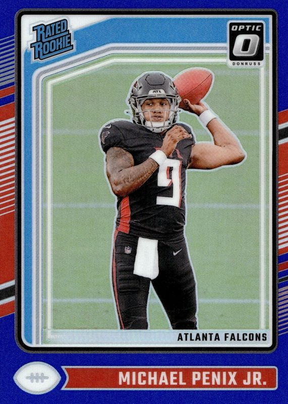 Michael Penix Jr. 2024 Panini Donruss Optic Rated Rookie Blue Holo /199 ATL #279