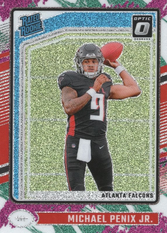The Michael Penix Jr. 2024 Optic #279 Jazz /(SSP) Rookie card in Raw condition has not changed in price in the last 30 days and was last sold for $209.99 .