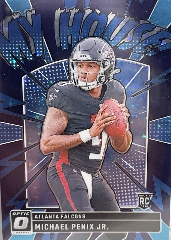 The Michael Penix Jr. 2024 Optic #7 My House! - Purple Stars /25 Rookie card in Raw condition has not changed in price in the last 30 days and was last sold for $99.99 .