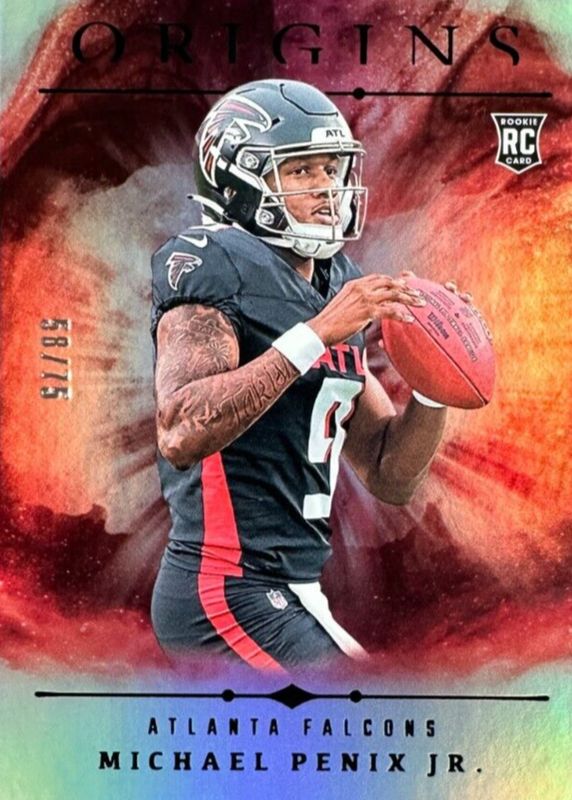 The Michael Penix Jr. 2024 Origins #124 Holo Silver /75 Rookie card in Raw condition has not changed in price in the last 30 days and was last sold for $25.00 .