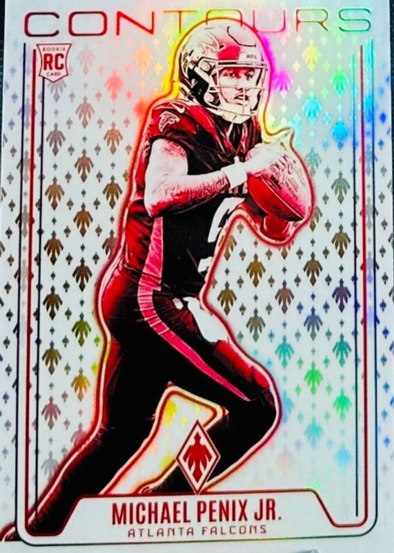 The Michael Penix Jr. 2024 Phoenix #CON-MPJ Contours - Bronze /75 Rookie card in Raw condition has not changed in price in the last 30 days and was last sold for $15.50 .