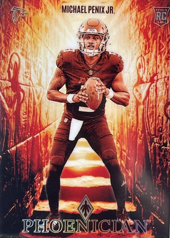 The Michael Penix Jr. 2024 Phoenix #PHO-MPJ Phoenician /(SSP) Rookie card in Raw condition has not changed in price in the last 30 days and was last sold for $27.09 .