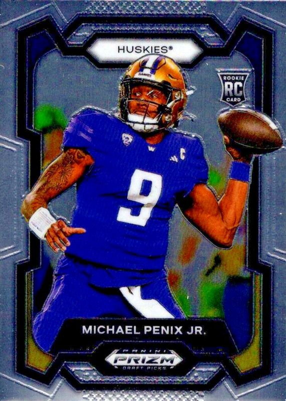 The Michael Penix Jr. 2024 Prizm Draft Picks #101 Base Rookie card in Raw condition has moved up $0.76 (+76.8%) in the last 30 days and was last sold for $1.75 .