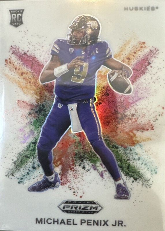 The Michael Penix Jr. 2024 Prizm Draft Picks #CB-2 Color Blast /(SSP) Rookie card in Raw condition has not changed in price in the last 30 days and was last sold for $215.00 .