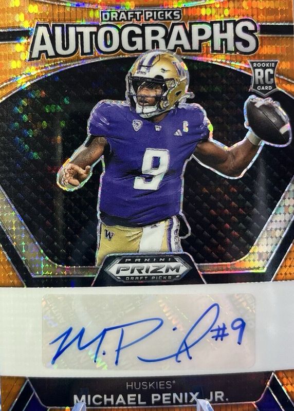 2024 Prizm Draft Picks Michael Penix Jr Auto RC /49 Orange Pulsar Washington