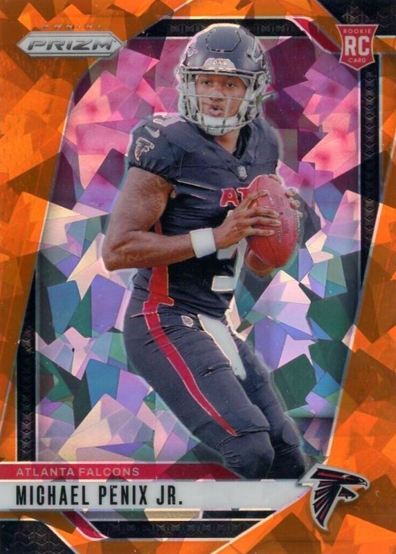 The Michael Penix Jr. 2024 Prizm #378 Orange Ice Rookie card in Raw condition has moved down -$2.57 (-34.3%) in the last 30 days and was last sold for $4.93 .