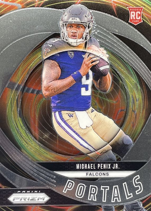 The Michael Penix Jr. 2024 Prizm #6 Portals Rookie card in Raw condition has moved down -$0.26 (-20.8%) in the last 30 days and was last sold for $0.99 .