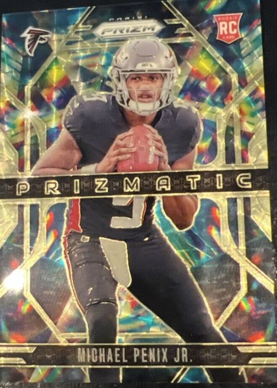 The Michael Penix Jr. 2024 Prizm #10 Prizmatic - Gold Vinyl /5 Rookie card in Raw condition has not changed in price in the last 30 days and was last sold for $733.00 .