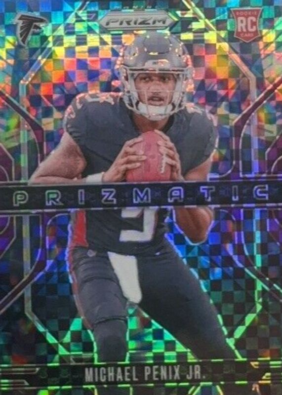 The Michael Penix Jr. 2024 Prizm #10 Prizmatic - Purple Power /49 Rookie card in Raw condition has not changed in price in the last 30 days and was last sold for $95.00 .