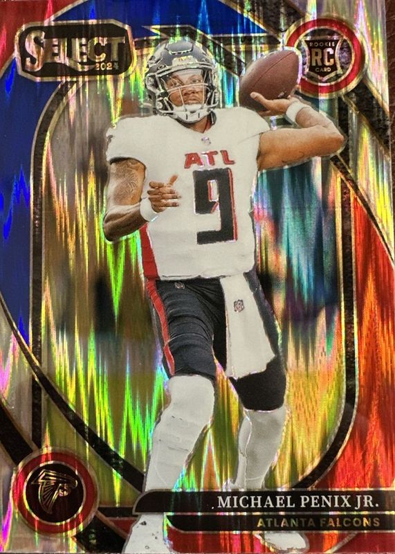 The Michael Penix Jr. 2024 Select #235 Club Level Red & Blue Shock Rookie card in Raw condition has moved up $0.01 (+0.5%) in the last 30 days and was last sold for $2.00 .