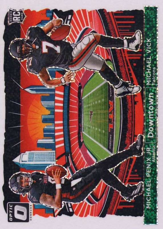 This card is 1 of 5 Michael Penix Jr. / Michael Vick's card variations in the 2024 Optic set being tracked by Sports Card Investor, including Downtown Duos /(SSP), Downtown Duos - Black Pandora /25, Downtown Duos - Gold /10, and Downtown Duos - Gold Vinyl /1.