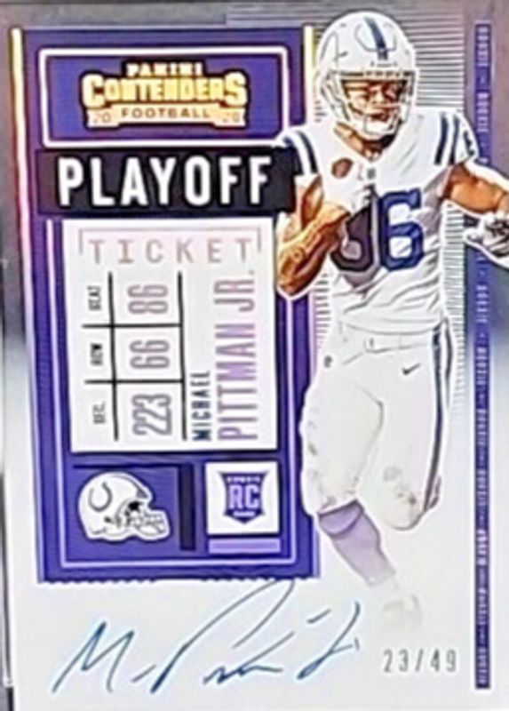 Auctions Ending Soon for Michael Pittman Jr. 2020 Contenders #114 Rookie Ticket Auto Variation - Playoff Ticket /49 RAW