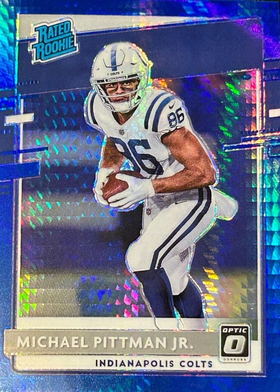 The Michael Pittman Jr. 2020 Optic #172 Blue Hyper Rookie card in Raw condition has not changed in price in the last 30 days and was last sold for $1.80 .