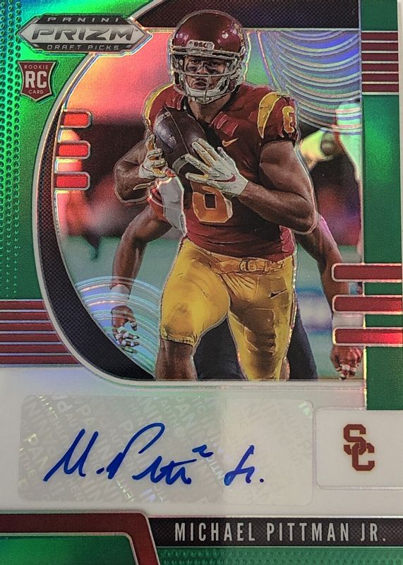 The Michael Pittman Jr. 2020 Prizm Draft Picks #145 Autographs - Green Rookie card in Raw condition has not changed in price in the last 30 days and was last sold for $14.99 .