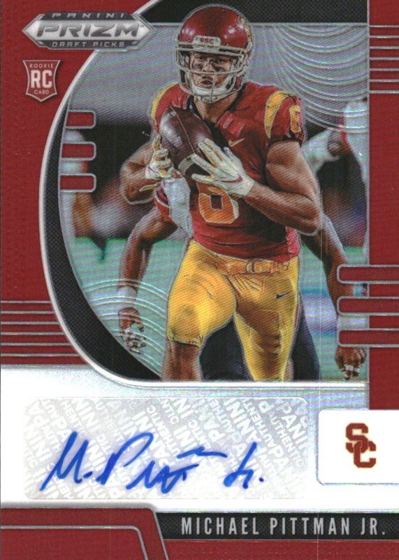 The Michael Pittman Jr. 2020 Prizm Draft Picks #145 Autographs - Red Rookie card in Raw condition has not changed in price in the last 30 days and was last sold for $20.00 .