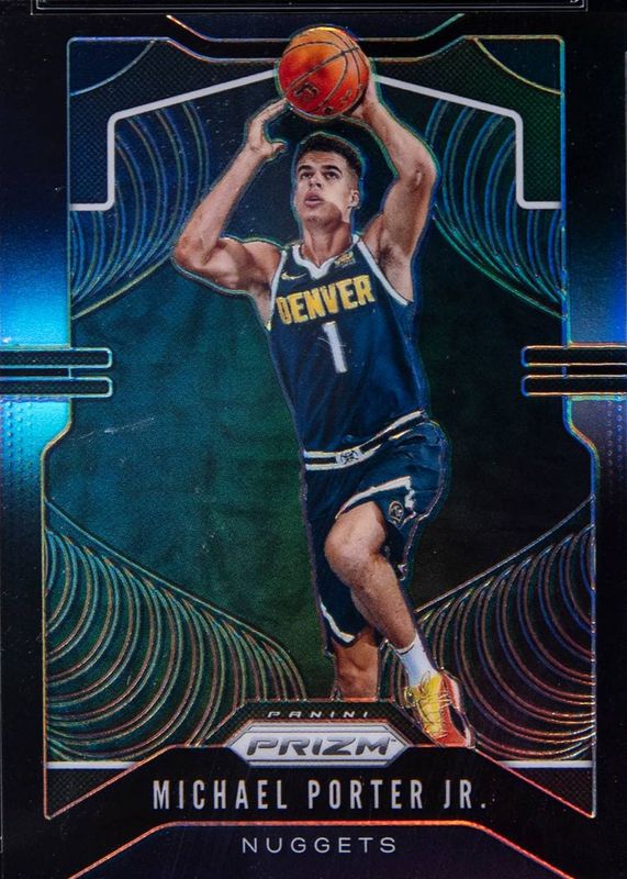 This card is 1 of 42 Michael Porter Jr.'s card variations in the 2019 Prizm set being tracked by Sports Card Investor, including Base, Choice Blue Yellow Green, Fanatics Green Ice, Fast Break, and FOTL Blue Shimmer.