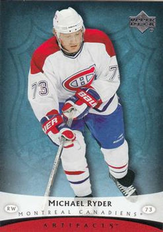 The Michael Ryder 2005 Upper Deck Artifacts #52 Base /750 card is 1 of 14 Michael Ryder's card variations in the 2005 Upper Deck Artifacts set being tracked by Sports Card Investor, including Pewter /100, Blue /75, Red /50, Green /25, and Gold /1.
