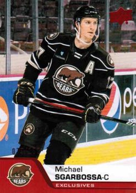 The Michael Sgarbossa 2020 Upper Deck AHL #24 UD Exclusives /100 card is 1 of 13 Michael Sgarbossa's card variations in the 2020 Upper Deck AHL set being tracked by Sports Card Investor, including #229 Base, #24 Base, #229 Red, #229 Gold /25, and #24 UD High Gloss /10.