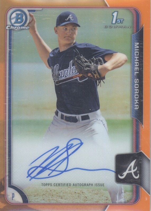 Best Prices Available For Sale of Michael Soroka 2015 Bowman Draft #BCA-MS Chrome DP Auto - Orange Refractor /25 (1st)