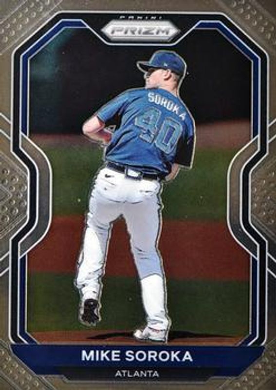 The Michael Soroka 2021 Prizm #174 Base card is 1 of 43 Michael Soroka's card variations in the 2021 Prizm set being tracked by Sports Card Investor, including Blue, Blue Velocity, Carolina Blue, Cosmic Haze, and Giraffe.