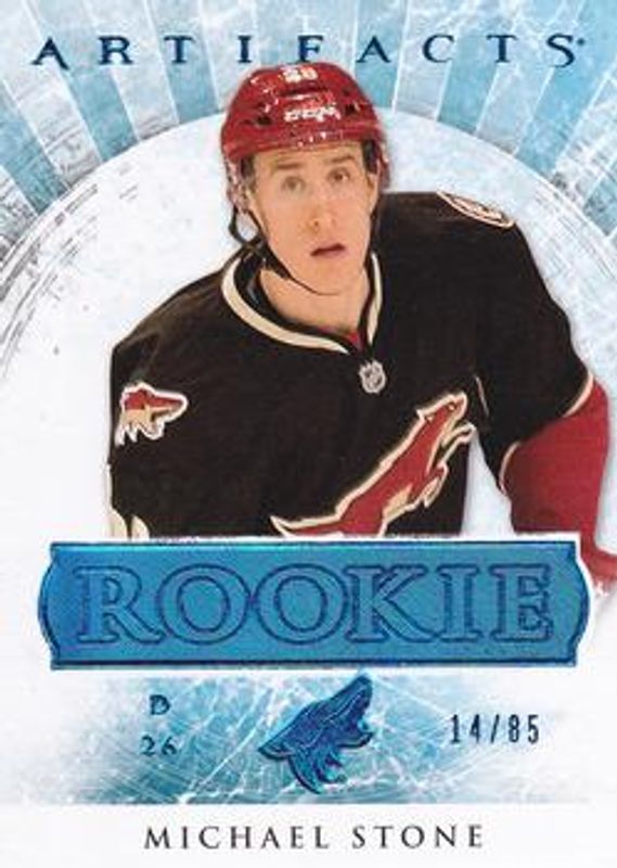 The Michael Stone 2012 Upper Deck Artifacts #190 Sapphire /85 Rookie card is 1 of 5 Michael Stone's card variations in the 2012 Upper Deck Artifacts set being tracked by Sports Card Investor, including Base /699, Emerald /99, Gold Spectrum /25, and Black /5.