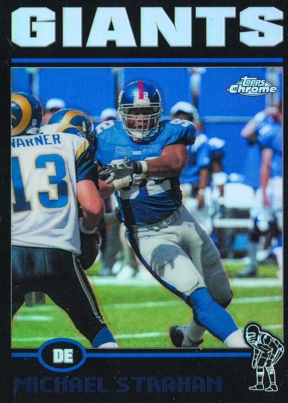This card is 1 of 2 Michael Strahan's card variations in the 2004 Topps Chrome set being tracked by Sports Card Investor, including Refractor.