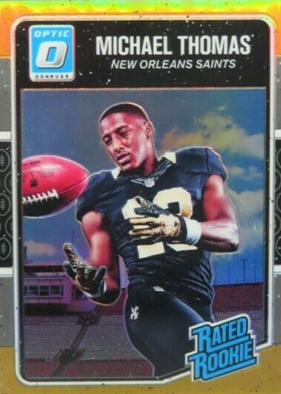 The Michael Thomas 2016 Optic #186 Orange /199 Rookie card in Raw condition has not changed in price in the last 30 days and was last sold for $13.50 .