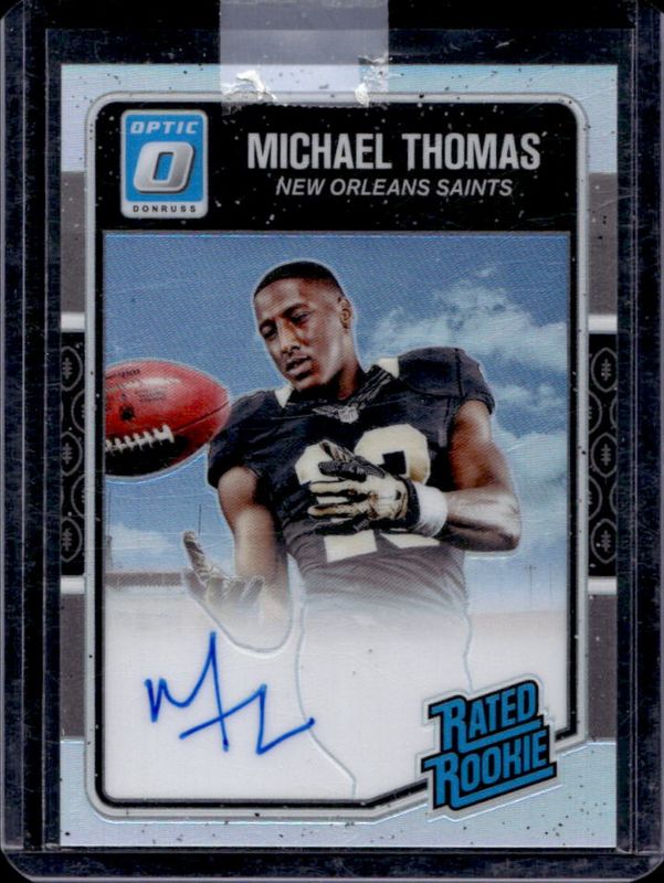 The Michael Thomas 2016 Optic #186 Rated Rookies Autographs - Holo /99 card is 1 of 40 Michael Thomas' card variations in the 2016 Optic set being tracked by Sports Card Investor, including #186 Base, Base, #186 Bronze, #186 Holo, and Holo.