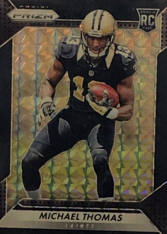 This card is 1 of 38 Michael Thomas' card variations in the 2016 Prizm set being tracked by Sports Card Investor, including Flash, Green, Pink, Red White Blue Disco, and Silver.