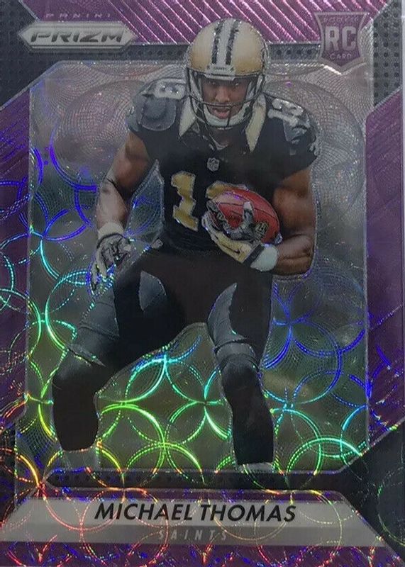 The Michael Thomas 2016 Prizm #230 Purple Scope /99 Rookie card in Raw condition has not changed in price in the last 30 days and was last sold for $3.25 .