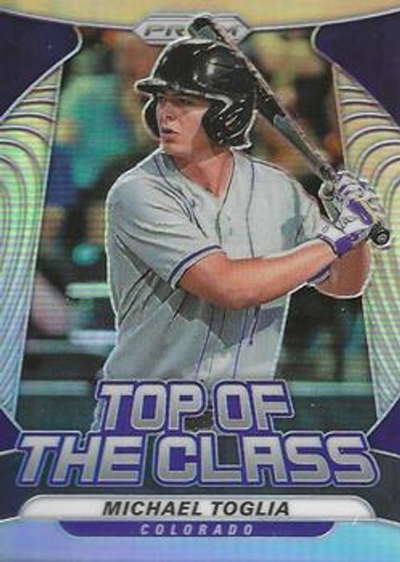 Michael Toglia's Baseball cards are available in at least 15 sets. Michael Toglia's biggest 7-day price movers are 2020 Prizm #TOC-23 Top of The Class - Silver, 2020 Prizm #TOC-23 Top of the Class, and 2020 Prizm #TOC-23 Top of The Class - Gold /10.