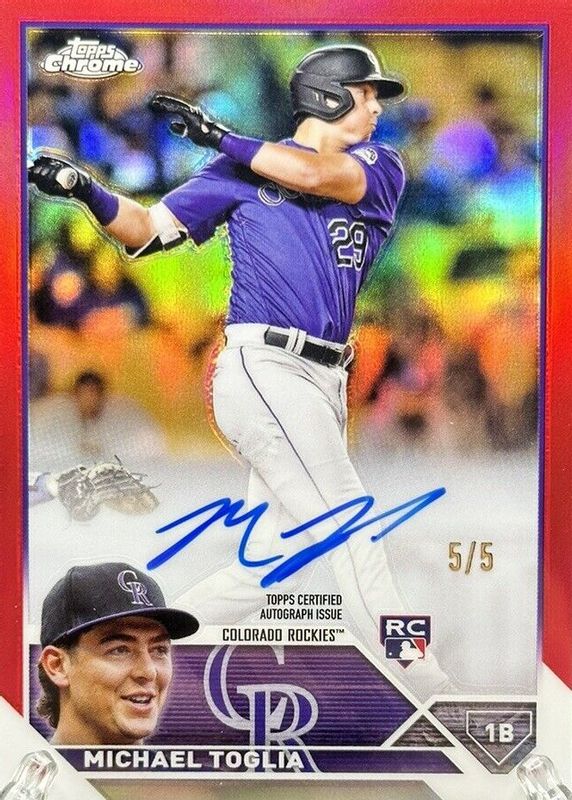 Michael Toglia 2023 Topps Chrome Red Refractor RC Auto /5 Rookie