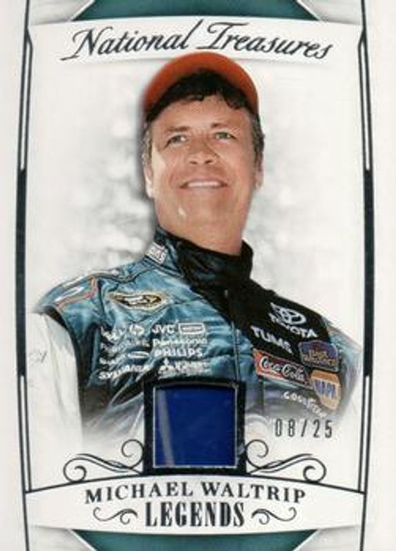 The Michael Waltrip 2017 National Treasures NASCAR #28 Base /25 card is 1 of 38 Michael Waltrip's card variations in the 2017 National Treasures NASCAR set being tracked by Sports Card Investor, including Century Holo Silver /20, Century Gold /15, Century Holo Gold /10, Century Green /5, and Century Black /1.