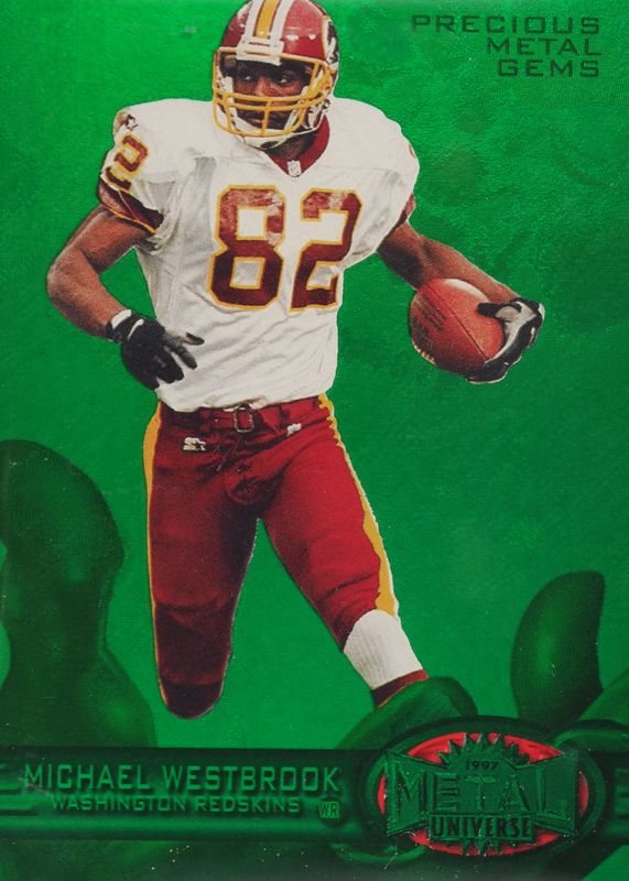 This card is 1 of 2 Michael Westbrook's card variations in the 1997 Metal Universe set being tracked by Sports Card Investor, including Precious Metal Gems Red /135.