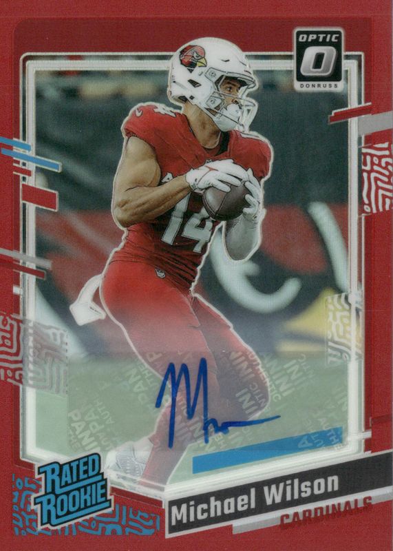 Best Prices Available For Sale of Michael Wilson 2023 Optic #204 Rated Rookie Autographs - Red /75