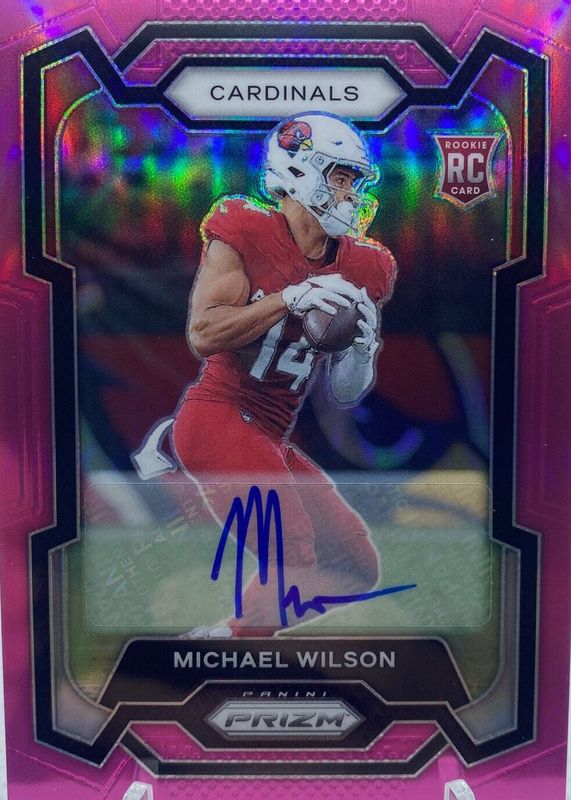 2023 PANINI PRIZM NFL FOOTBALL MICHAEL WILSON #303 ROOKIE PINK PRIZMS AUTO SP