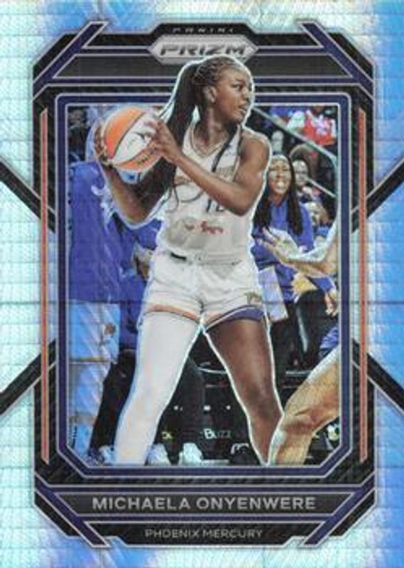 The Michaela Onyenwere 2023 Prizm WNBA #56 Hyper card is 1 of 21 Michaela Onyenwere's card variations in the 2023 Prizm WNBA set being tracked by Sports Card Investor, including Base, Blue Wave, Green, Ice, and Ruby Wave.