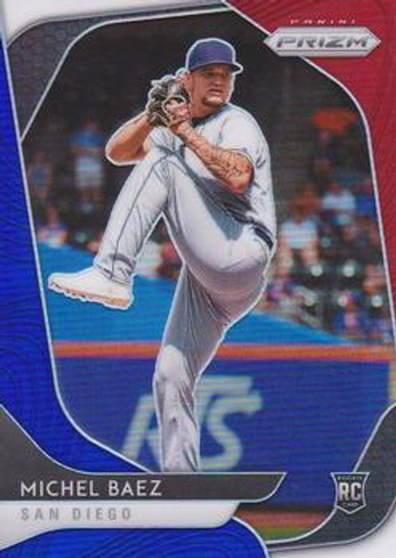 The Michel Baez 2020 Prizm #90 Red White Blue Rookie card is 1 of 62 Michel Baez's card variations in the 2020 Prizm set being tracked by Sports Card Investor, including Base, Blue, Carolina Blue, Cosmic Haze, and Green.