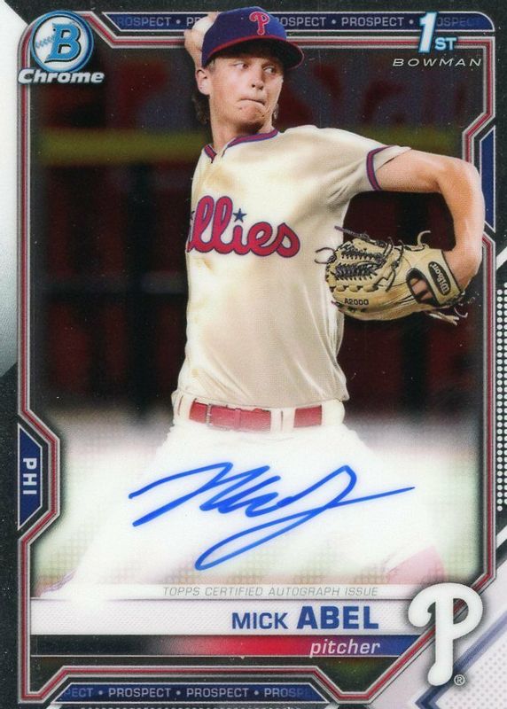 Mick Abel Phillies Auto Signed 2021 Bowman Chrome .