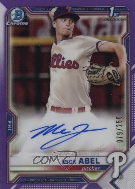 2021 Bowman Chrome Mick Abel Purple Auto /250 1st Bowman #CPA-MAB Phillies