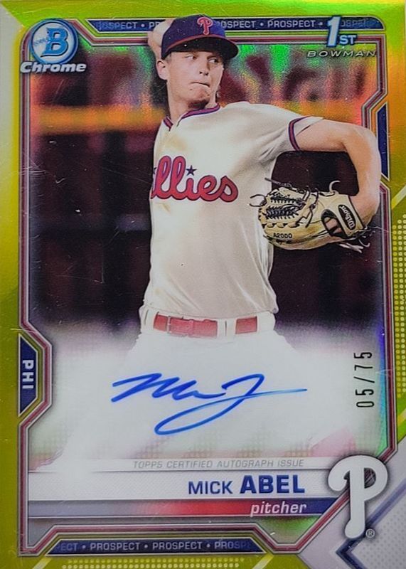 2021 Bowman Chrome YELLOW AUTO #/75 Mick Abel 1st Bowman Phillies